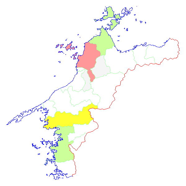 ■ 2013-02-16より2013-02-22までの愛媛県における市町村毎の報告地図