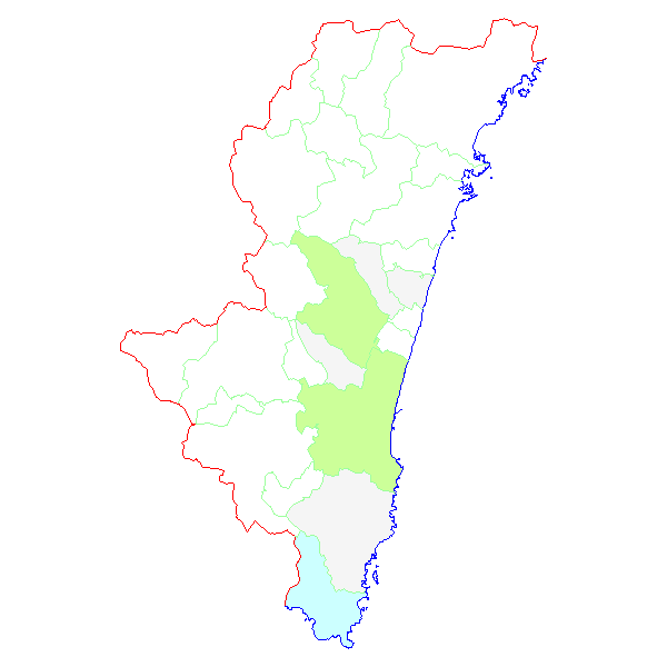 ■ 2013-03-10より2013-03-16までの宮崎県における市町村毎の報告地図