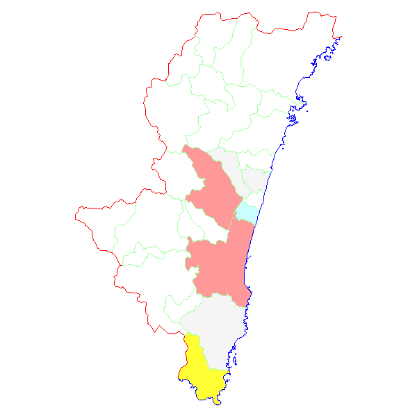 ■ 2014-01-26より2014-02-01までの宮崎県における市町村毎の報告地図