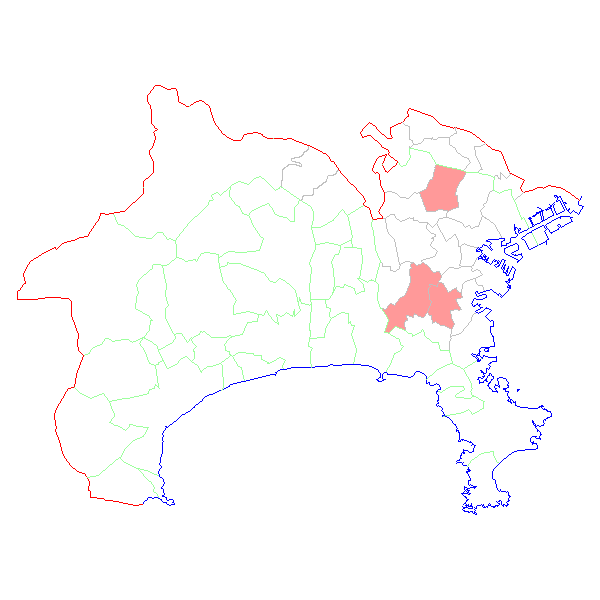 ■ 2014-02-01より2014-02-07までの神奈川県における市町村毎の報告地図
