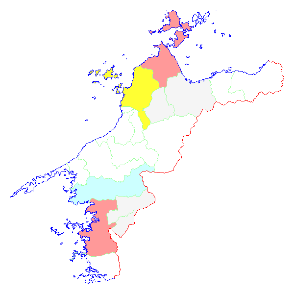 ■ 2014-02-15より2014-02-21までの愛媛県における市町村毎の報告地図