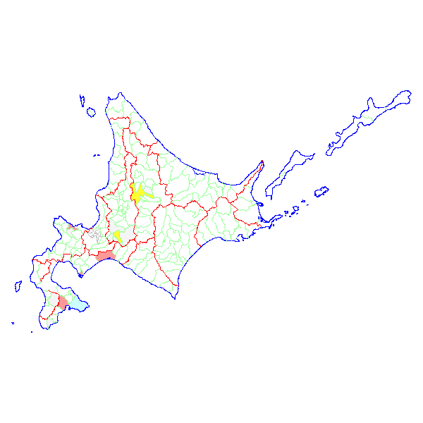 ■ 2014-02-22より2014-02-28までの北海道における市町村毎の報告地図
