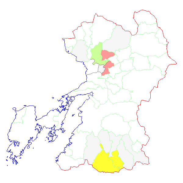 ■ 2014-03-02より2014-03-08までの熊本県における市町村毎の報告地図