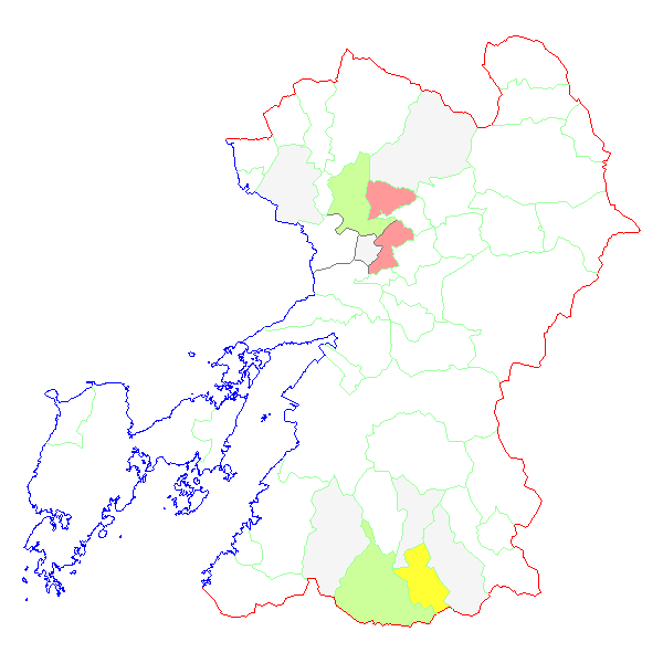 ■ 2014-03-03より2014-03-09までの熊本県における市町村毎の報告地図