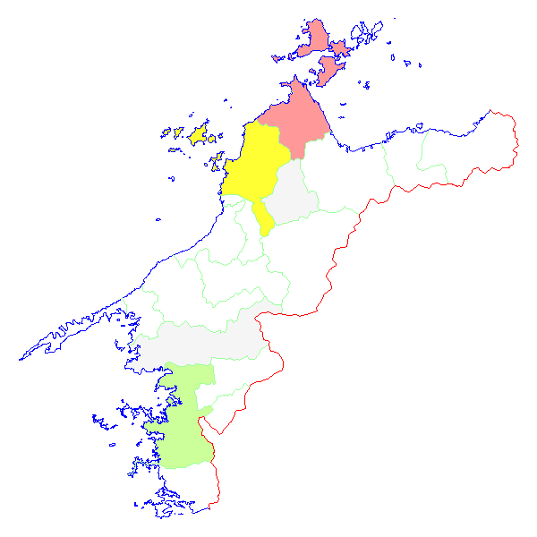■ 2014-03-09より2014-03-15までの愛媛県における市町村毎の報告地図