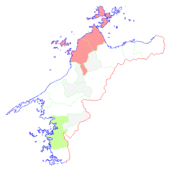 ■ 2014-03-16より2014-03-22までの愛媛県における市町村毎の報告地図