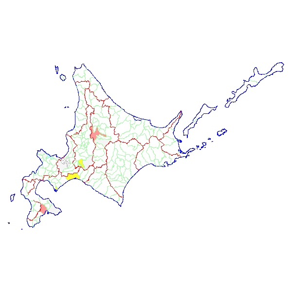 ■ 2014-03-22より2014-03-28までの北海道における市町村毎の報告地図