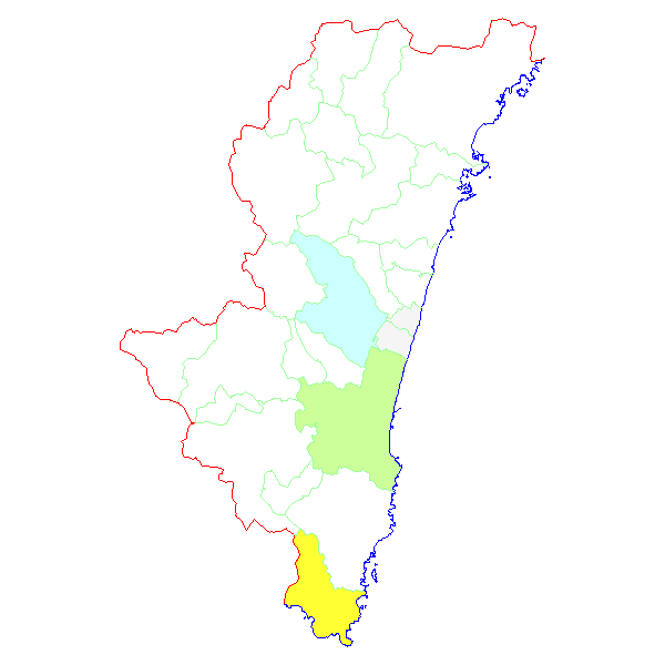 ■ 2014-03-23より2014-03-29までの宮崎県における市町村毎の報告地図