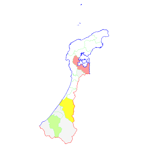 ■ 2014-04-21より2014-04-27までの石川県における市町村毎の報告地図