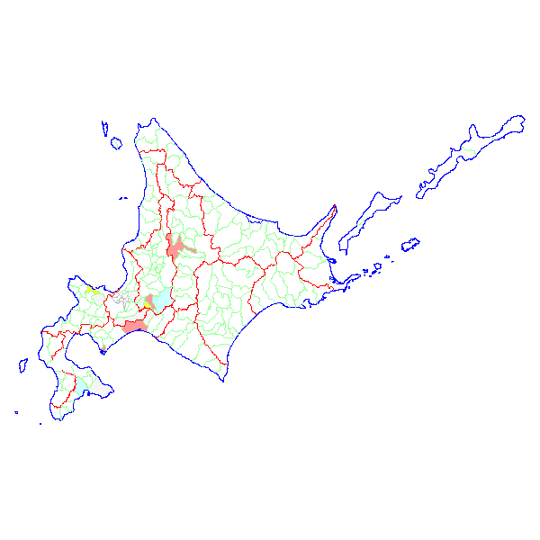 ■ 2014-12-21より2014-12-27までの北海道における市町村毎の報告地図