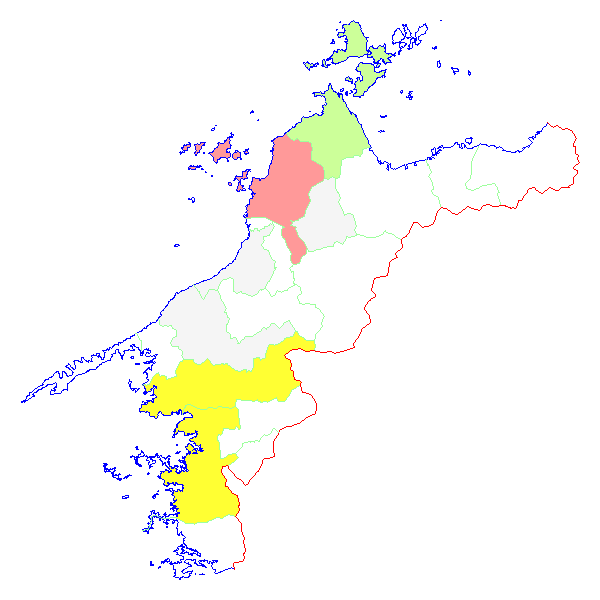 ■ 2014-12-27より2015-01-02までの愛媛県における市町村毎の報告地図