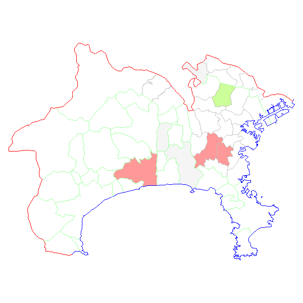 ■ 2015-01-03より2015-01-09までの神奈川県における市町村毎の報告地図