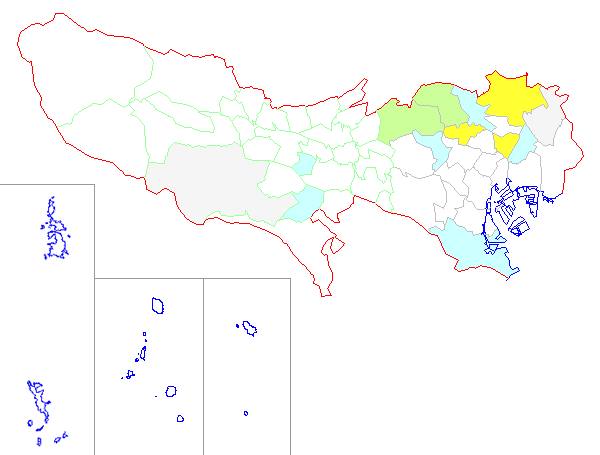 ■ 2015-01-12より2015-01-18までの東京都における市町村毎の報告地図
