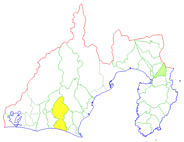 ■ 2015-01-12より2015-01-18までの静岡県における市町村毎の報告地図