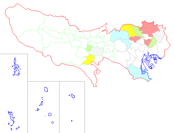 ■ 2015-01-19より2015-01-25までの東京都における市町村毎の報告地図