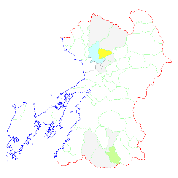 ■ 2015-02-08より2015-02-14までの熊本県における市町村毎の報告地図