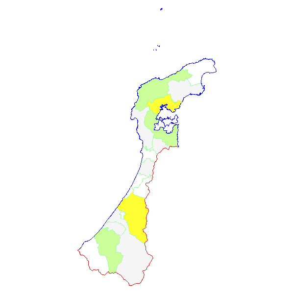 ■ 2015-03-01より2015-03-07までの石川県における市町村毎の報告地図