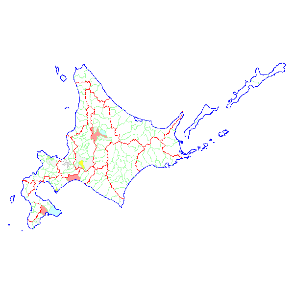 ■ 2016-01-24より2016-01-30までの北海道における市町村毎の報告地図