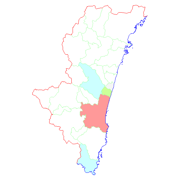 ■ 2016-02-01より2016-02-07までの宮崎県における市町村毎の報告地図