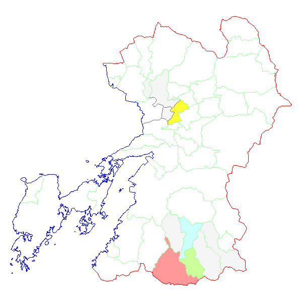 ■ 2016-02-08より2016-02-14までの熊本県における市町村毎の報告地図