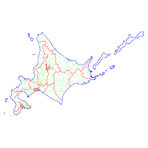 ■ 2016-02-21より2016-02-27までの北海道における市町村毎の報告地図