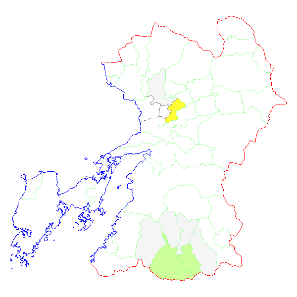■ 2016-02-22より2016-02-28までの熊本県における市町村毎の報告地図