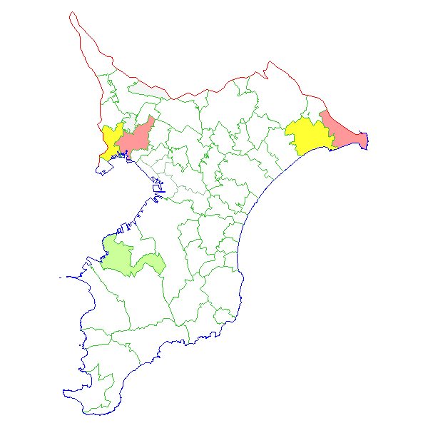 ■ 2016-02-29より2016-03-06までの千葉県における市町村毎の報告地図