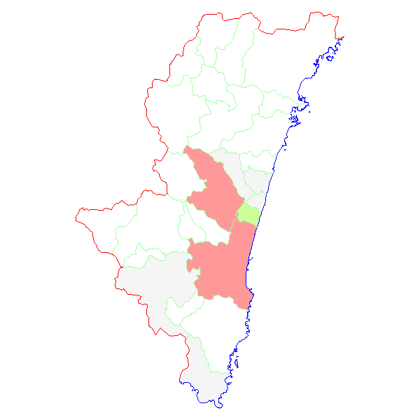 ■ 2016-02-29より2016-03-06までの宮崎県における市町村毎の報告地図