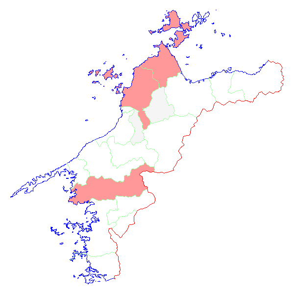 ■ 2016-03-05より2016-03-11までの愛媛県における市町村毎の報告地図