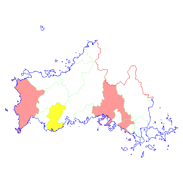 ■ 2016-03-13より2016-03-19までの山口県における市町村毎の報告地図