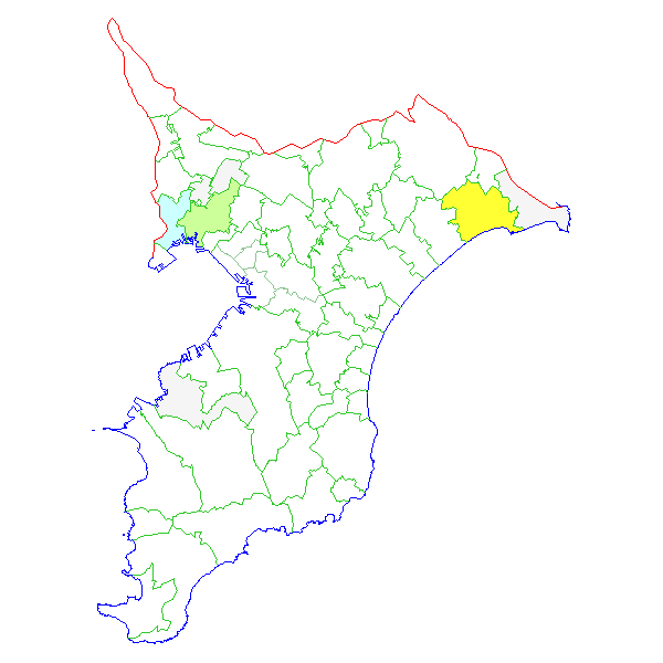 ■ 2016-03-19より2016-03-25までの千葉県における市町村毎の報告地図
