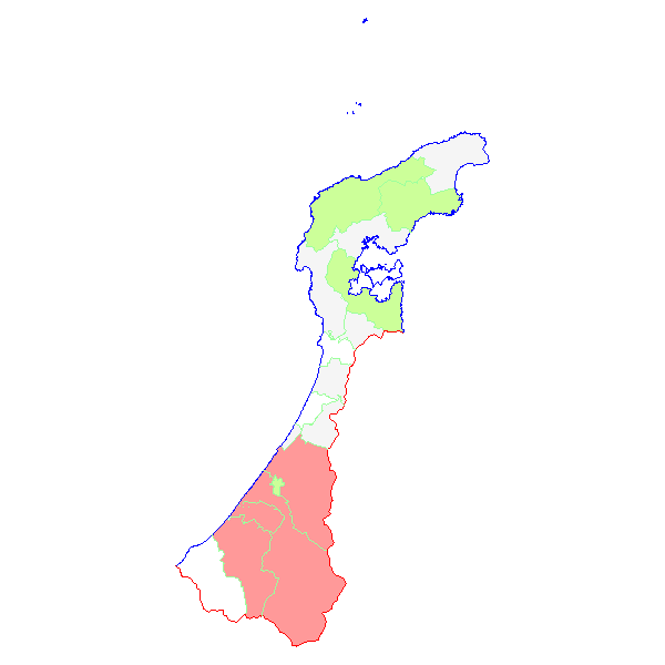 ■ 2016-04-04より2016-04-10までの石川県における市町村毎の報告地図