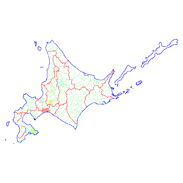 ■ 2017-01-16より2017-01-22までの北海道における市町村毎の報告地図