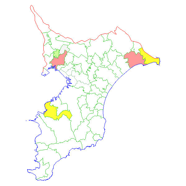 ■ 2017-01-16より2017-01-22までの千葉県における市町村毎の報告地図