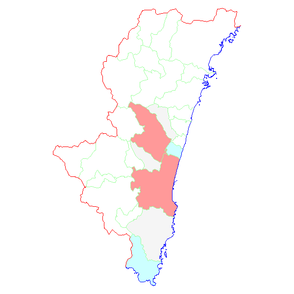 ■ 2017-01-16より2017-01-22までの宮崎県における市町村毎の報告地図