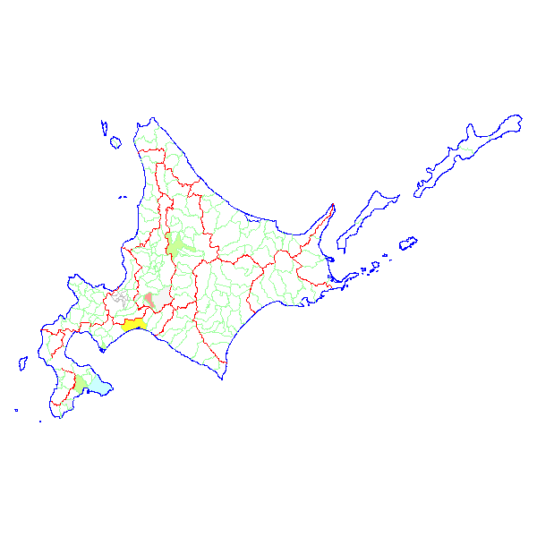 ■ 2017-01-21より2017-01-27までの北海道における市町村毎の報告地図