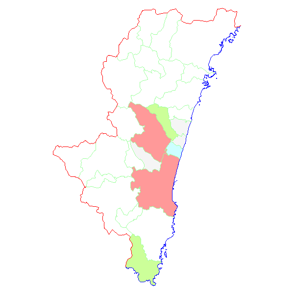 ■ 2017-01-21より2017-01-27までの宮崎県における市町村毎の報告地図