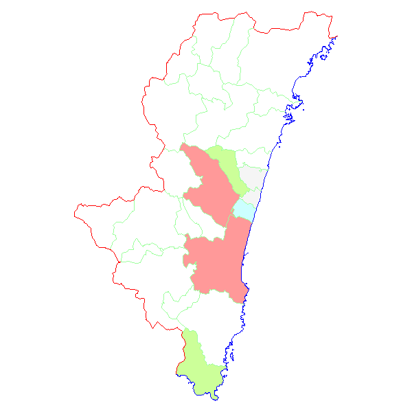 ■ 2017-01-23より2017-01-29までの宮崎県における市町村毎の報告地図