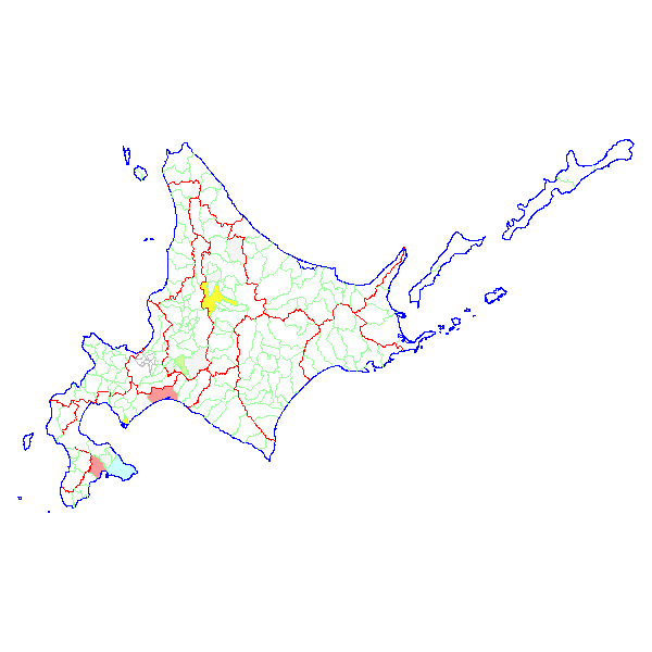 ■ 2017-01-30より2017-02-05までの北海道における市町村毎の報告地図