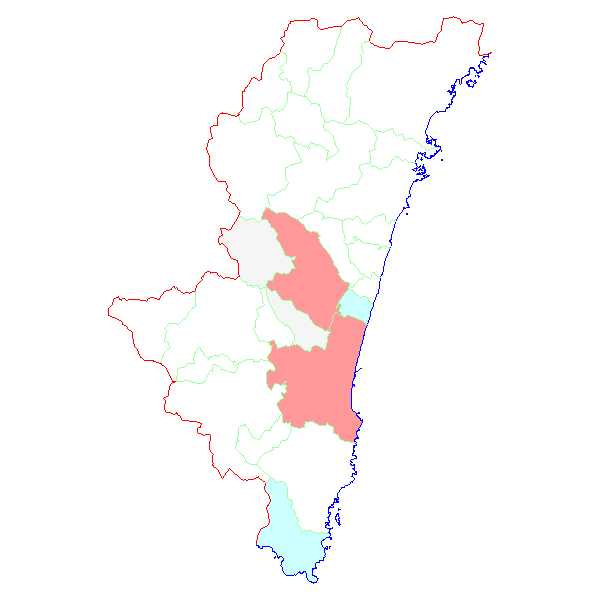 ■ 2017-02-06より2017-02-12までの宮崎県における市町村毎の報告地図