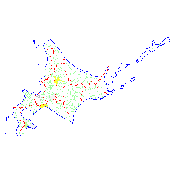 ■ 2017-02-19より2017-02-25までの北海道における市町村毎の報告地図