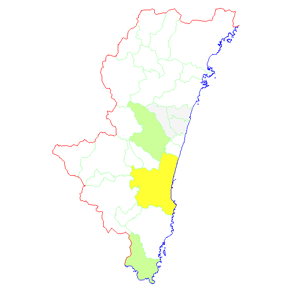 ■ 2017-03-06より2017-03-12までの宮崎県における市町村毎の報告地図