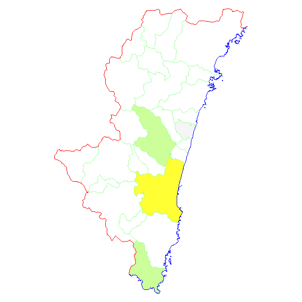 ■ 2017-03-20より2017-03-26までの宮崎県における市町村毎の報告地図