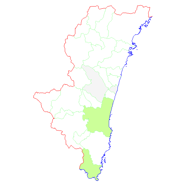 ■ 2017-04-08より2017-04-14までの宮崎県における市町村毎の報告地図