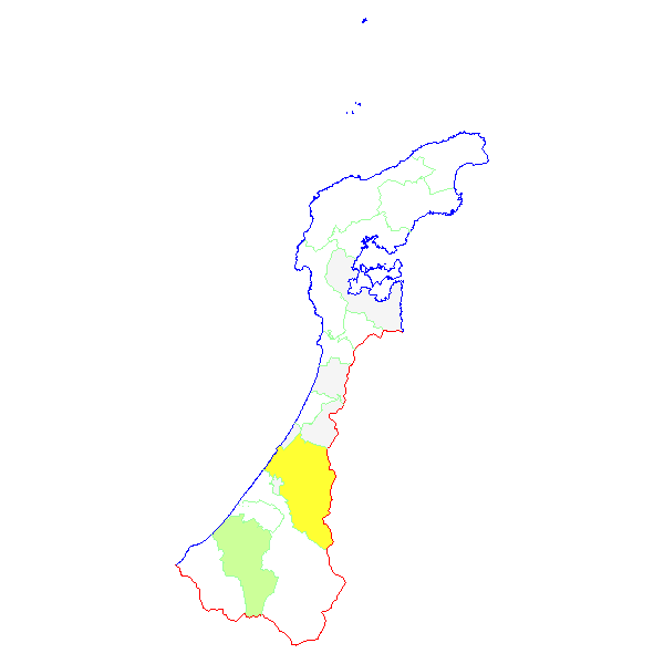 ■ 2017-04-22より2017-04-28までの石川県における市町村毎の報告地図