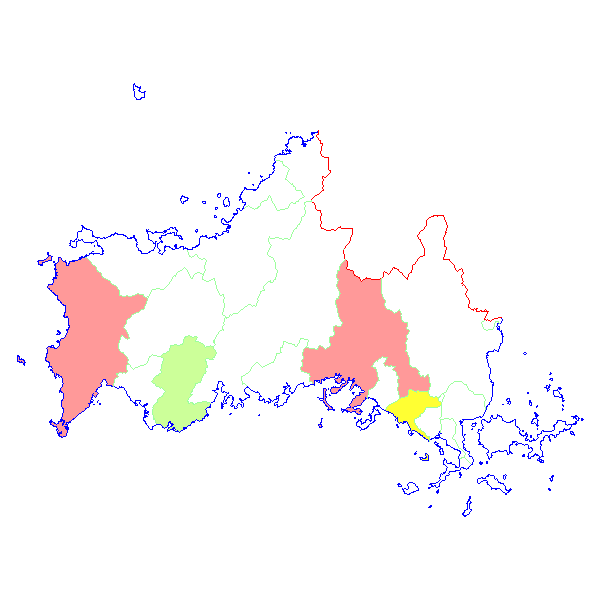 ■ 2018-01-08より2018-01-14までの山口県における市町村毎の報告地図