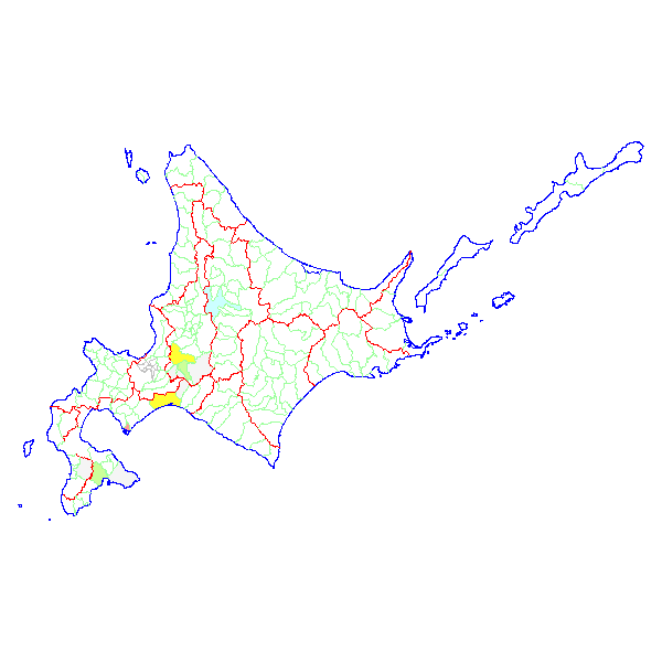 ■ 2018-01-15より2018-01-21までの北海道における市町村毎の報告地図