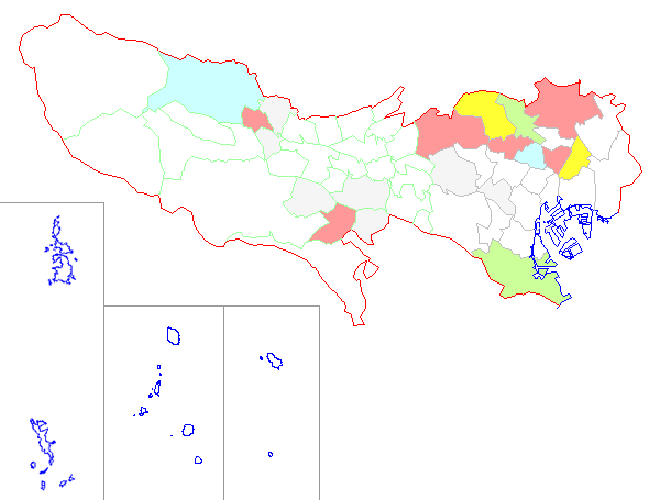 ■ 2018-01-15より2018-01-21までの東京都における市町村毎の報告地図