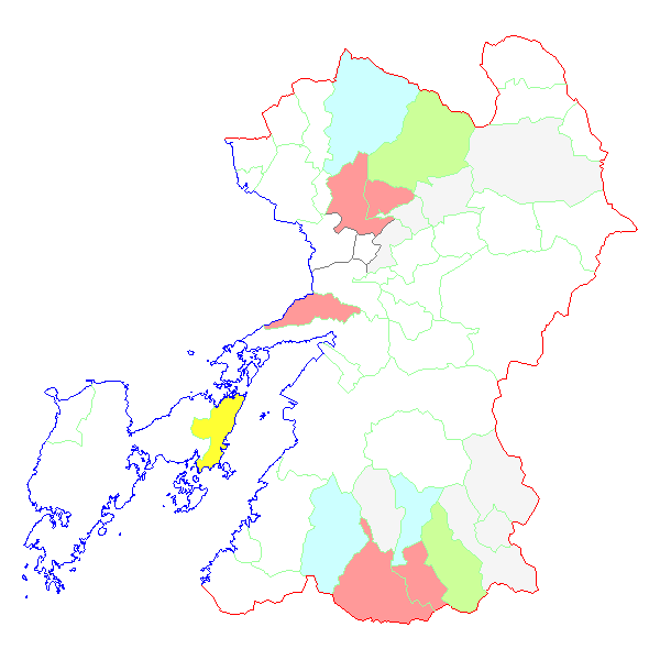 ■ 2018-01-15より2018-01-21までの熊本県における市町村毎の報告地図
