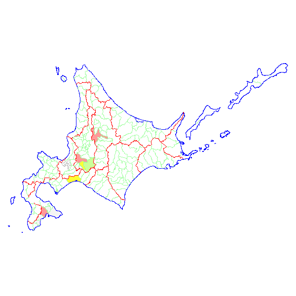 ■ 2018-03-10より2018-03-16までの北海道における市町村毎の報告地図